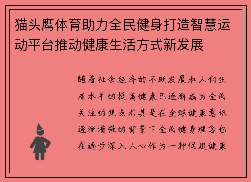 猫头鹰体育助力全民健身打造智慧运动平台推动健康生活方式新发展